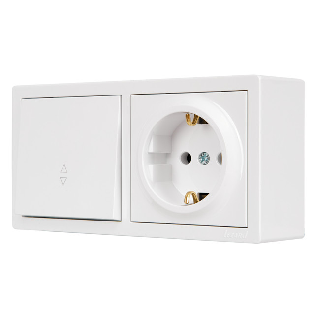 блок переключатель 1-клавишный и розетка LEZARD Leto с/з белый