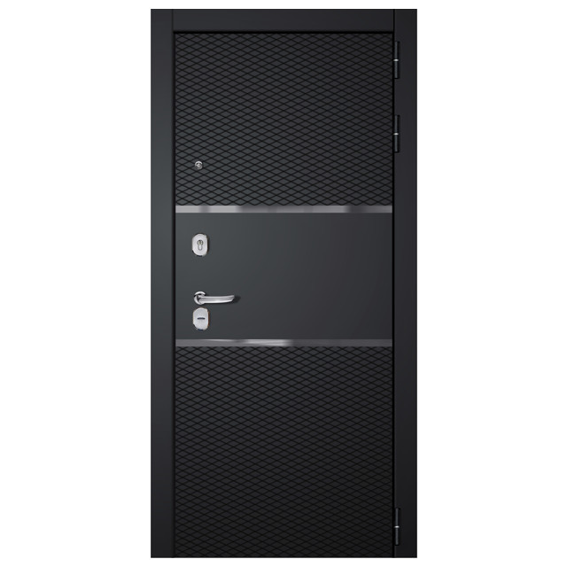 дверь входная Диамант чёрный муар зеркало белый 870мм правая