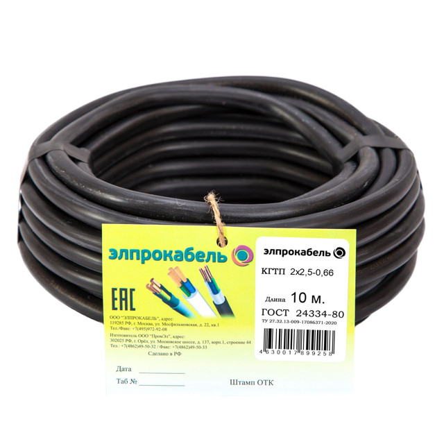 кабель КГтп ЭлПроКабель гибкий круглый 2х2,5 ГОСТ 10м черный