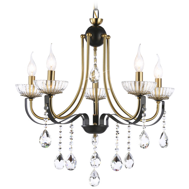 люстра подвесная AMBRELLA Traditional E14х5 40Вт черный/золото/прозрачный