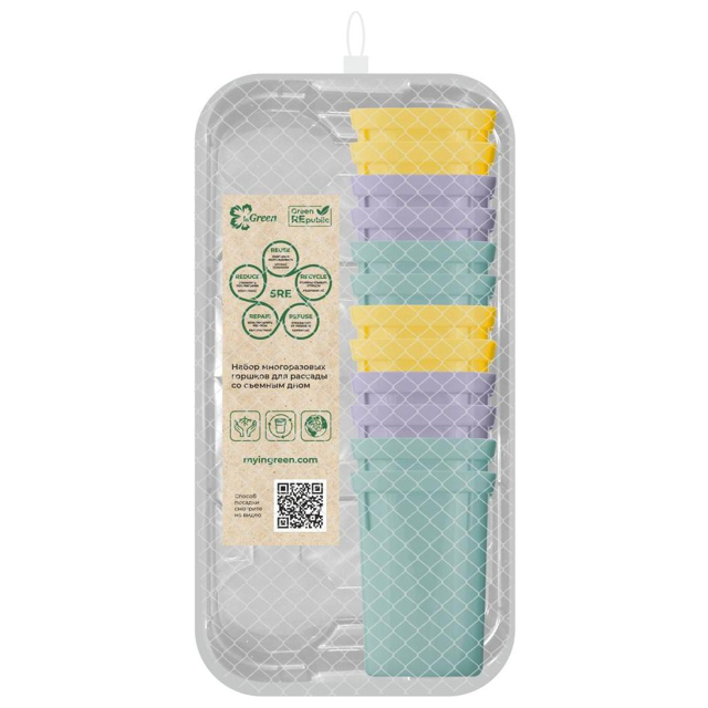 набор многоразовых горшков для рассады InGreen for Green Republic 0,2л 12шт съемное дно поддон микс