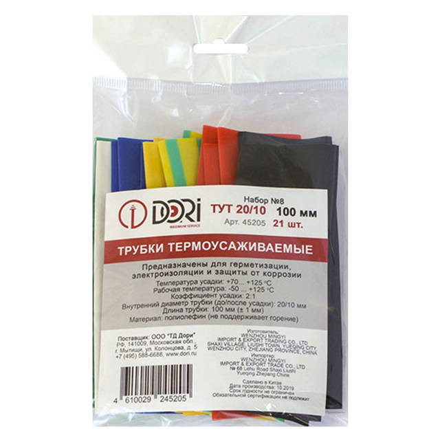 набор термоусадочных трубок DORI Тут d 20/10 10см 21шт. разноцвет