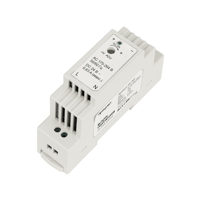 блок питания APEYRON на DIN рейку 24В 15Вт 175-264В 0,63А IP20 пластик белый