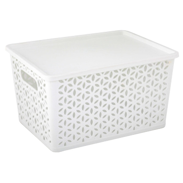 корзина Мираж 38х28,5х21см 22л с крышкой пластик белый