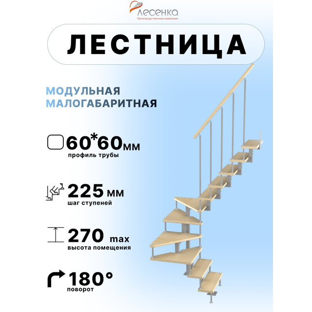 лестница ЛЕСЕНКА Эксклюзив-Квадро поворот на 180 град h 2475-2700