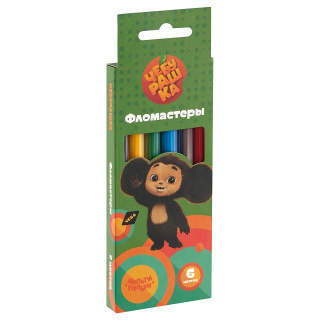 набор фломастеров МУЛЬТИ-ПУЛЬТИ Чебурашка 6цв 0,5-1,0 мм круглые смываемые