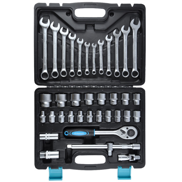 | Состав набора | ключи комбинированные, головки, кардан шарнирный, удлинитель, трещотка |