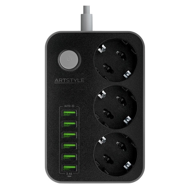 сетевой фильтр ARTSTYLE 3 гнезда 6USB 1,6м черный