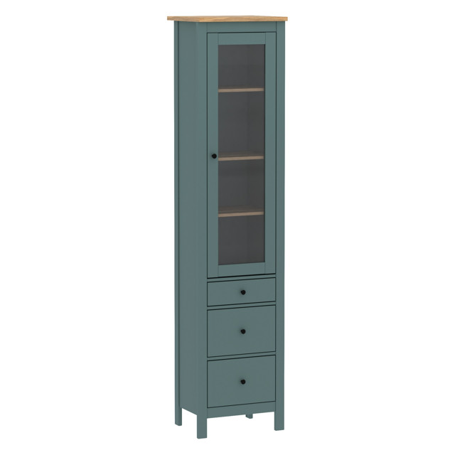 шкаф с витриной САГА узкий 496х2155х414мм бирюзовый/ясень ЛДСП