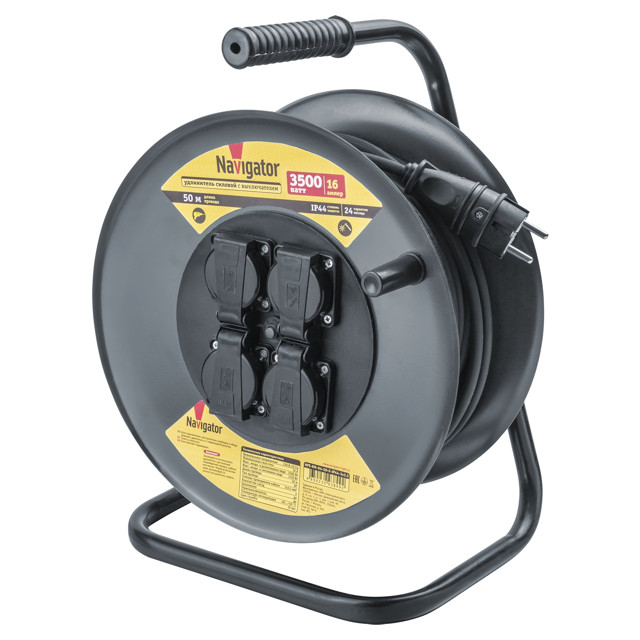 удлинитель на катушке NAVIGATOR 4 гнезда КГ c/з IP44 3x2.5мм 16А 50м